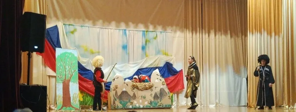 • Актеры театральной студии «Маскарад» МБОУ СОШ № 9 познакомили присутствующих с дагестанским фольклором, сыграв сказку «Про храброго мальчика», чем вызвали бурю аплодисментов от благодарных зрителей.